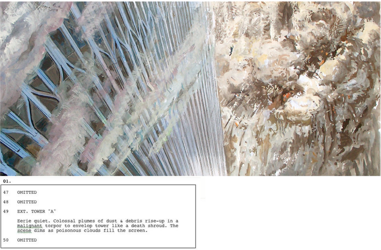 Wayne Coe, AMERICAN HERO: 110 stories, gouache on board, 12" x 60", 2004