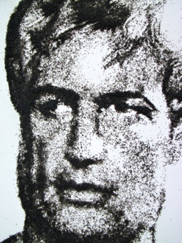 Wayne Coe, 55th Street Playhouse, 6’ x 4’, black sand on canvas, 2010