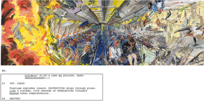 Wayne Coe, AMERICAN HERO: Cross Section, gouache on board, 8.5" x 19", 2004
