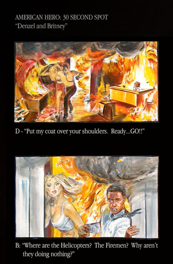 Wayne Coe, AMERICAN HERO: Denzel & Britney, oil on canvas and wood, 60" x 48", 2004