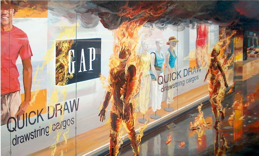 Wayne Coe, Flamers - The Mall, Enamel on canvas, 44” x 72”, 2006