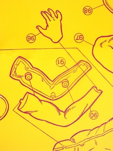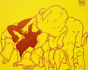 Wayne Coe, Human Pyramid Model Instructions: Hasheim, enamel on canvas, 8’ x 6’, 2008
