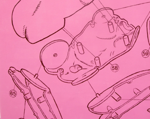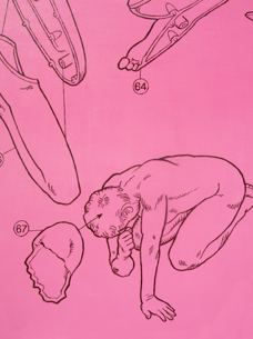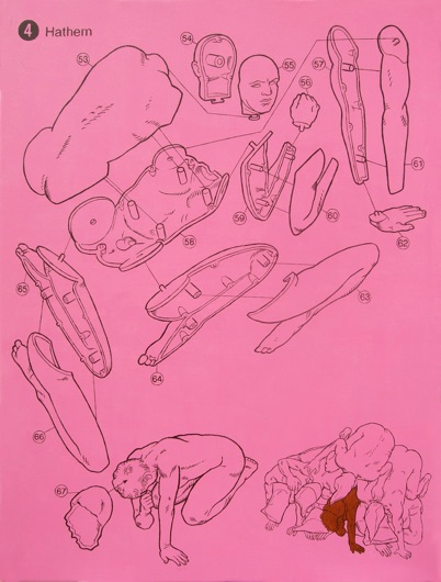 Wayne Coe, Human Pyramid Model Instructions: Hathem, enamel on canvas, 8’ x 6’, 2008