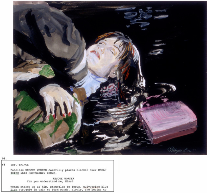 Wayne Coe, AMERICAN HERO: Hilary Swank/Pentagon Pink Purse, gouache on board, 12" x 16", 2004