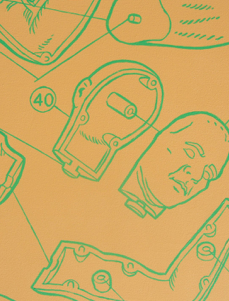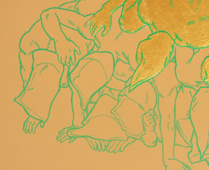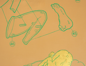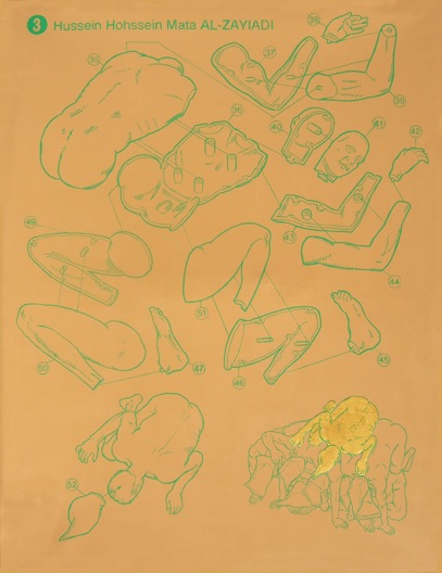 Wayne Coe, Human Pyramid Model Instructions: Hussein, enamel on canvas, 8’ x 6’, 2008
