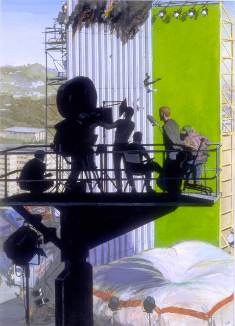 Wayne Coe, AMERICAN HERO: Jumper Stunt Shoot, gouache on board, 17" x 12", 2004
