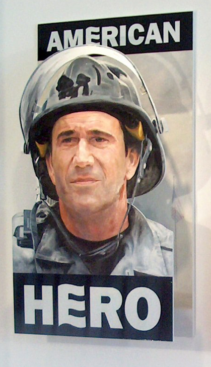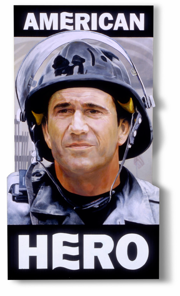 Wayne Coe, AMERICAN HERO: George Clooney, oil on wood, 53" x 34", 2004