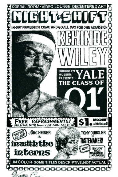 Wayne Coe, Night-Shift/Kehinde Wiley, 6’ x 4’, black sand on canvas, 2010