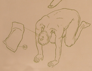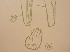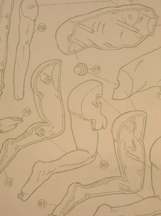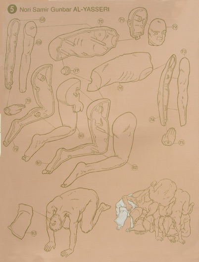 Wayne Coe, Human Pyramid Model Instructions: Nori Samir, enamel on canvas, 8’ x 6’, 2008