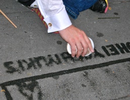 4.5 hours in the stream of the parade. Terrrenceo stood guard over the passage behind the tree along the curb where people would have cut right across my sand painting. Very rewarding.