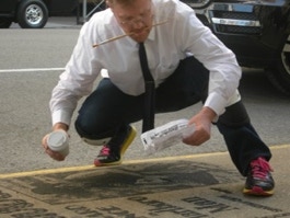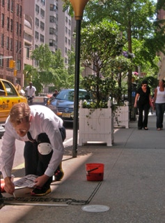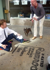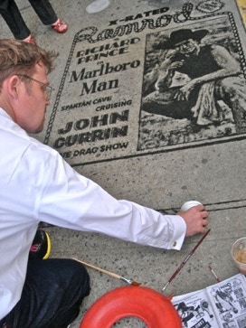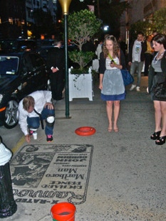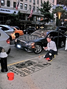 At the train station 11:00 Friday night. Exhausted, exhilarated. Like waves crashing over my body, the stone, fighting the building superintendent, surviving, getting interest from the glitterati, my performance as an event, a collector repeated: “this would be GREAT for an event”. The questions of permanence recur and strangely the lovers of beauty seem too often foreign. A Sotheby’s representative from London, Pierre Dolman, trips to avoid the sand, he grabs his friends shoulder with a ‘Voila’ gesture! “You are the artist?! You must do this for Sotheby’s.”