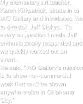 I offered to do an installation if he could find a suitable crowd. It was over 100 degrees on the street so it had to be in the gallery. He identified a Democratic fundraiser a few days away, funded my flight change and got the necessary permissions from the Democrats.