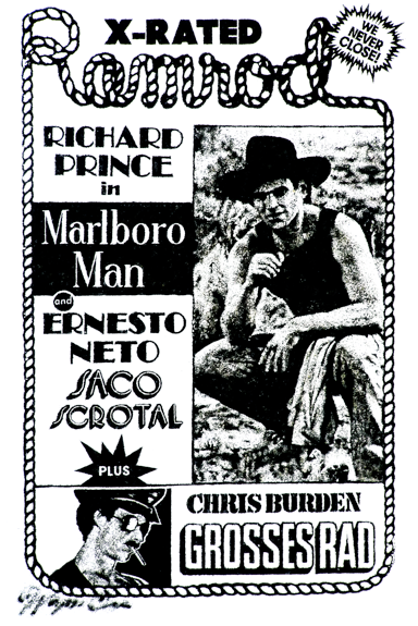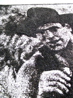Wayne Coe, Ramrod/Richard Prince, 6’ x 4’, black sand on canvas, 2010